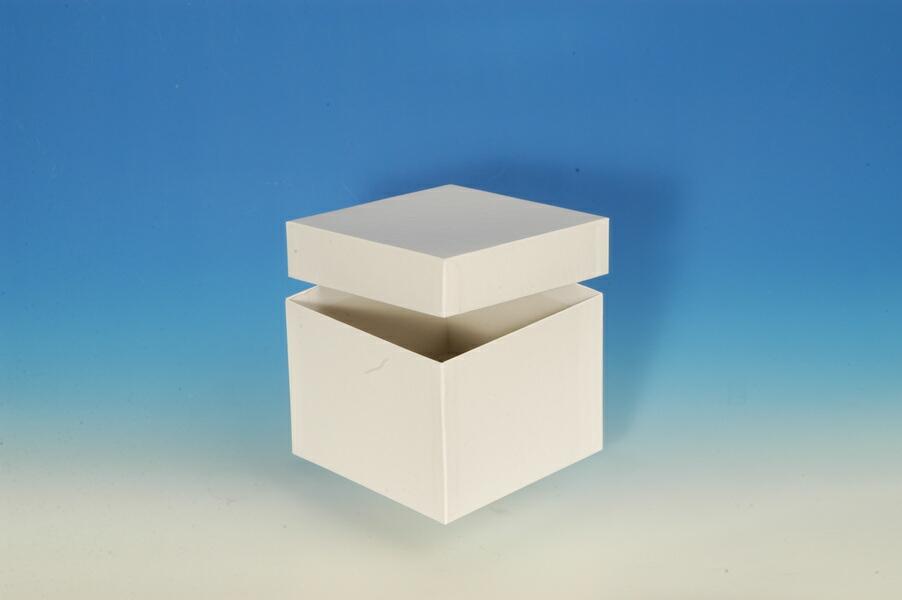 Cryo-Box Typ A- Cardboard material - water-repellent coated, whiteouter dimensions (WxDxH): 136x136x103 mm