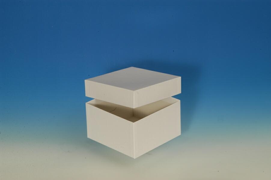 Cryo-Box Typ A- Cardboard material - water-repellent coated, whiteouter dimensions (WxDxH): 133x133x73 mm